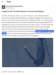 Houthis say fired missiles at US tanker in Red Sea, southern IsraelYemen’s Houthi rebels have launched naval missiles at a US tanker — the Mado — in the Red Sea, according to spokesperson Yahya Sarea.