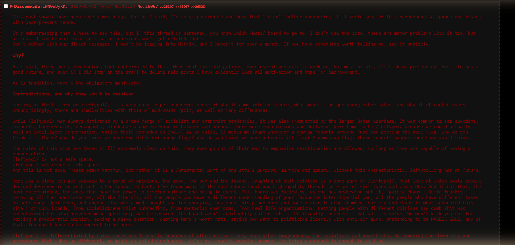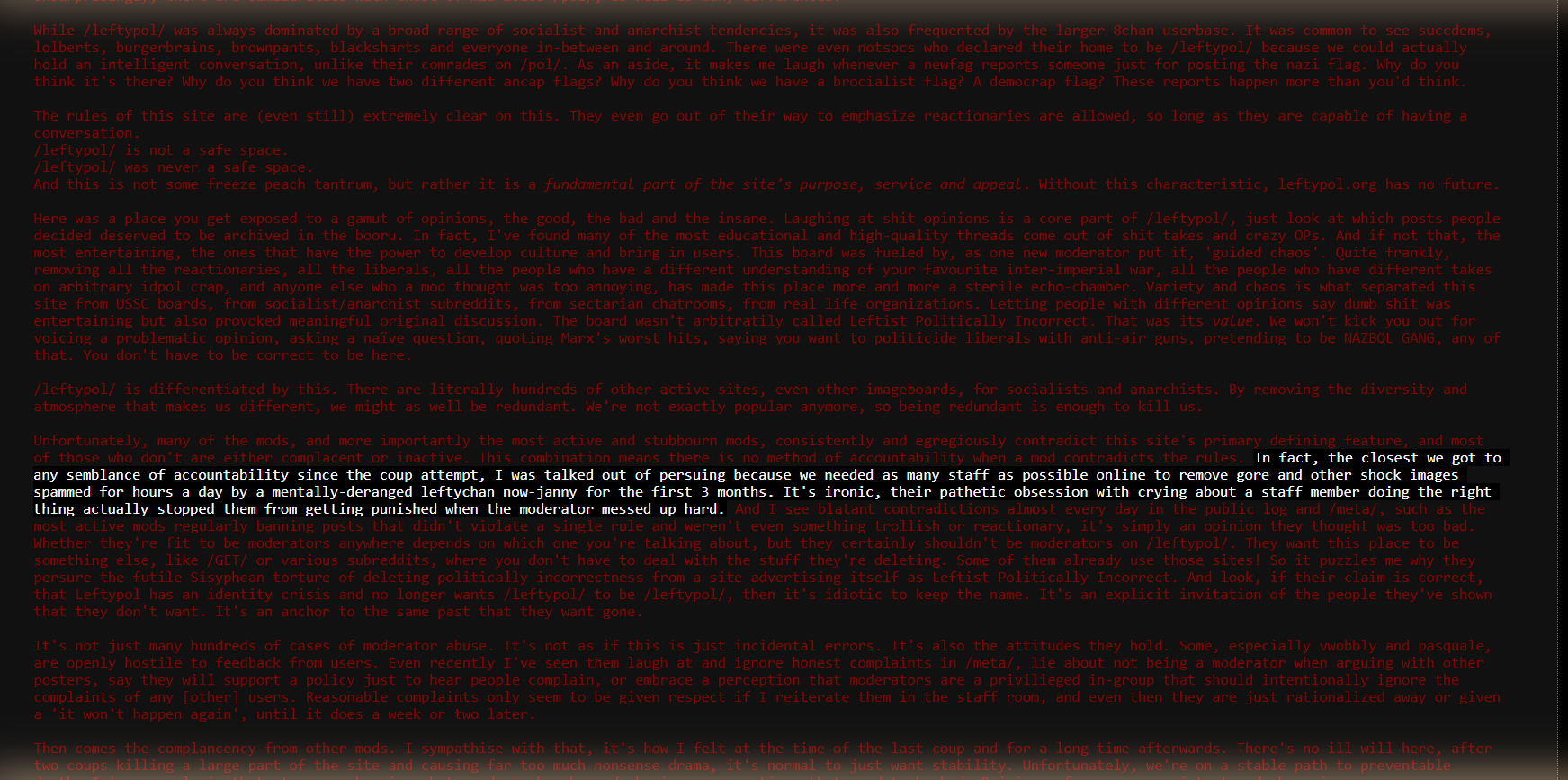 Stop being nice. LEFTYPOL.org mods are deranged animals who need to be put in their place. Let’s raid and turn the place into a shithole. If we lack numbers, bring over polaks from 4chan and soyjack if need be. The point is not to fraternise with polaks but to ruin LEFTYPOL.org. The mods are assholes who manipulate the discourse and gaslight to no end. We must end them.